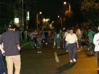 午後10時半、西成署付近銀座通りに通じる各通りは機動隊により完全に封鎖されている。